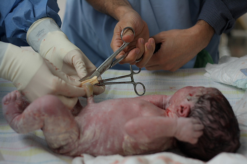 • Ask your midwife help you achieve both goals, she should assist you by separating your cord from your placenta with scissors and place both cord and placenta in your chosen containers.